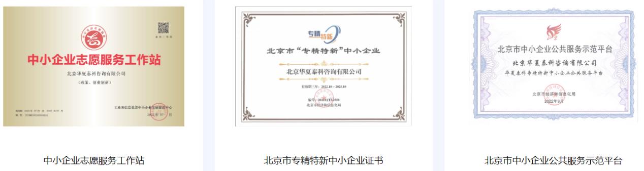 2022年,成为北京市专精特新中小企业,北京市中小企业公共服务平台合作服务商,北京市中小企业公共服务示范平台,工信部中小企业志愿服务工作站,中国中小企业国际合作协会。